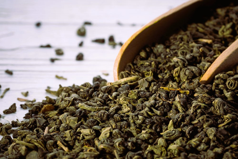 Gunpowder tea is usually made with green tea leaves which originate from the Camellia sinensis plant. Usually, green tea contains about 30 milligrams of caffeine per one cup serving,1 but gunpowder tea often provides slightly more.